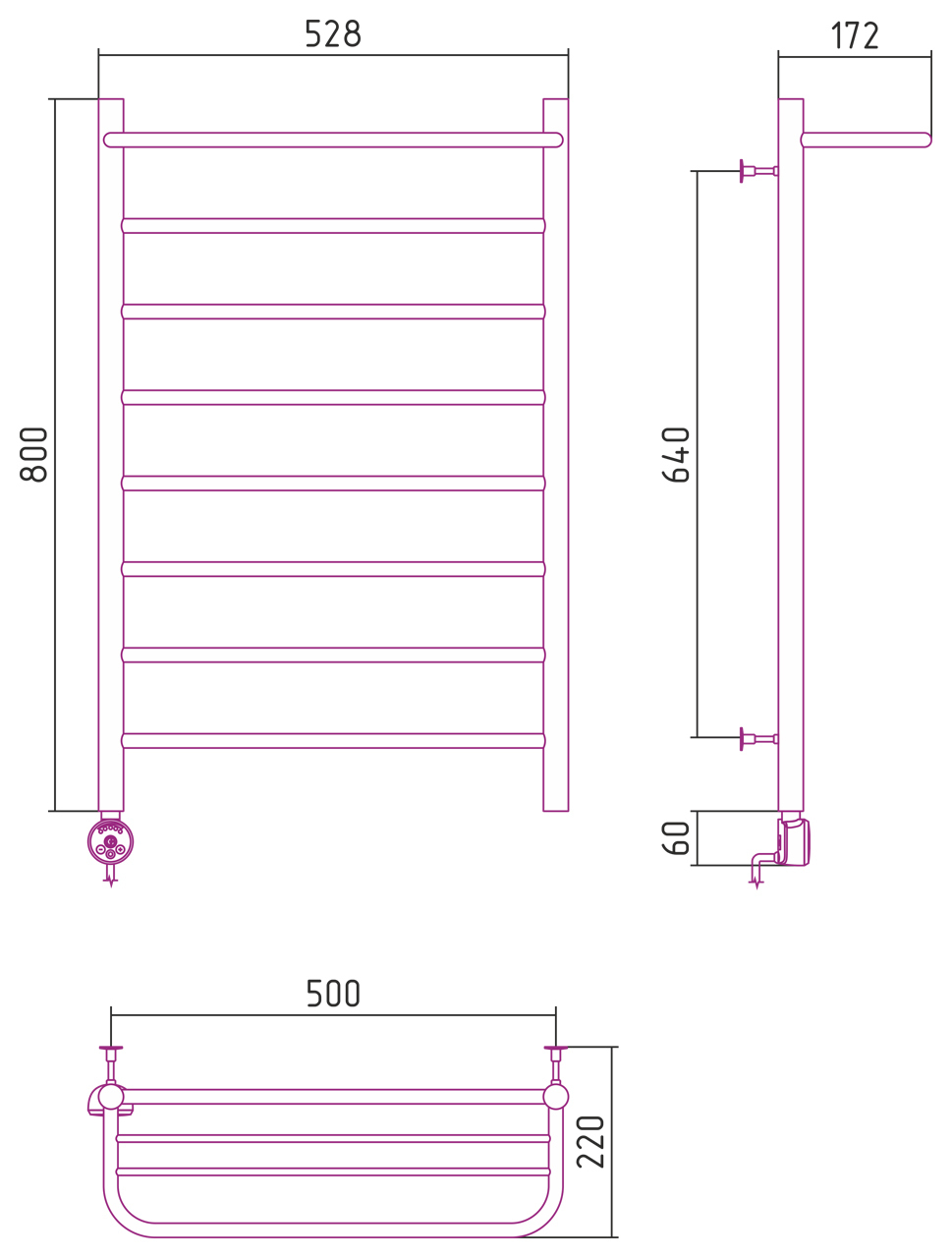 Полотенцесушитель электрический Стилье Формат №20 800x500