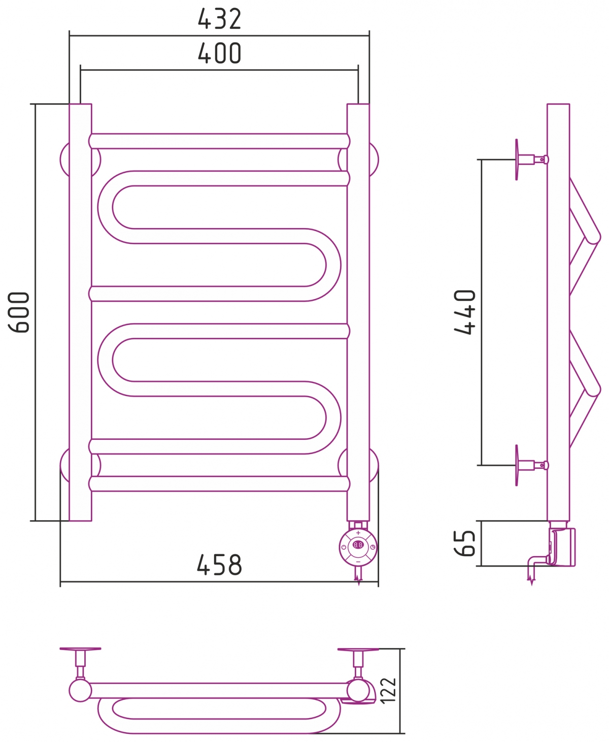 Полотенцесушитель электрический Стилье Формат №22 600x400