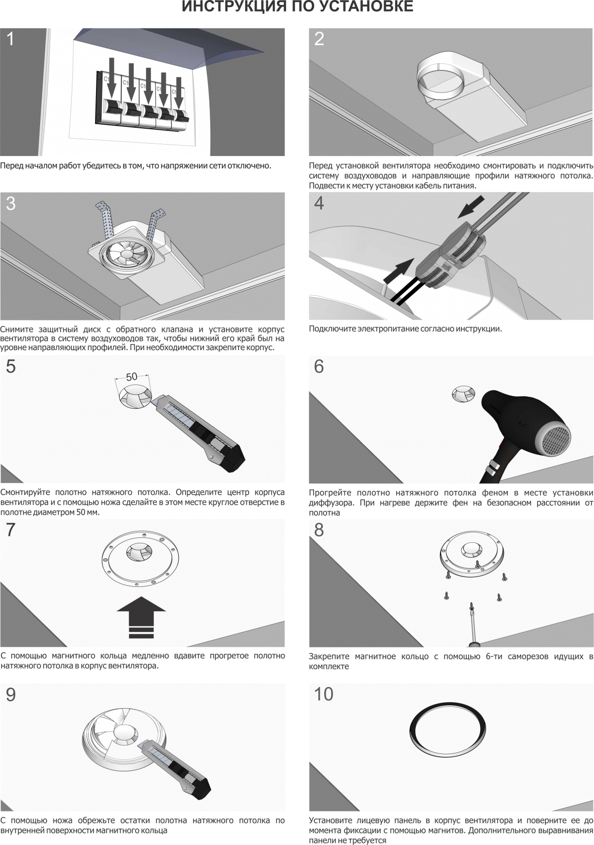 Вентилятор FAN легко снять и поставить обратно, для этого не требуется разбирать потолок: корпус диффузора остается на месте. Через года, когда придет время менять вентилятор – Вы всегда сможете приобрести у нас новый, ресурс мотора 50 000 часов.
